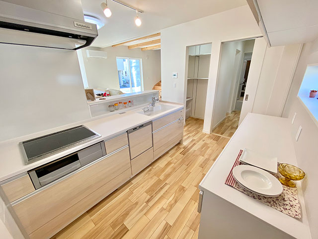 玄関からキッチンへ、一直線の快適な家事動線!心地よい暮らしの始まりを、建築の美と機能で実現