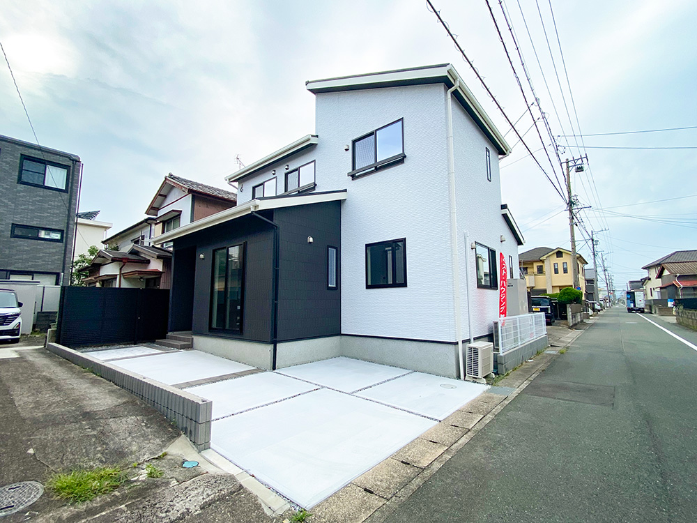 【外構付き】★浜松駅まで車で約6分の好立地。スーパーやコンビニ、ドラッグストアが徒歩や自転車圏内に揃い、車1台でも暮らしやすい住環境。 共働き家族に嬉しい3帖のサンルームのある3LDKの住まい。