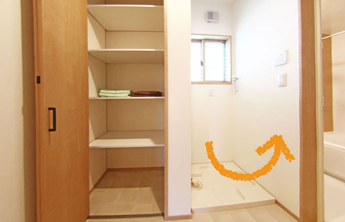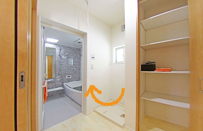 この場合は、右開きが正解です。左開きを買ってしまうと浴室のドアと洗濯機のフタに挟まれてしまい、何をするにも一度後ろにさがる動作が必要になります。