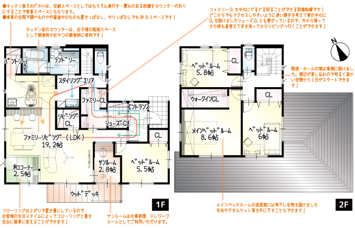 - ・テレワークに最適な2.8帖のフリールームを1階に設置した4LDKの住まい。