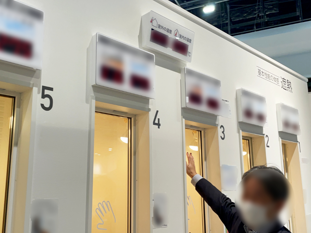 外気が真冬の設定になっている5つの部屋があり、各部屋の窓の違いで、室内温度や結露状況が大きく変わっています。リアルタイムでサーモグラフィーで目で見ることもできました。