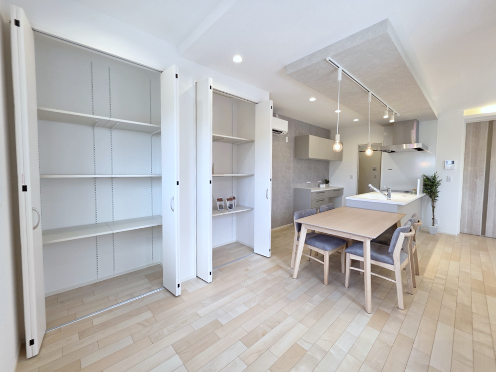 日用品や防災用品の収納に使えるリビングCL+パントリーを配置しました。