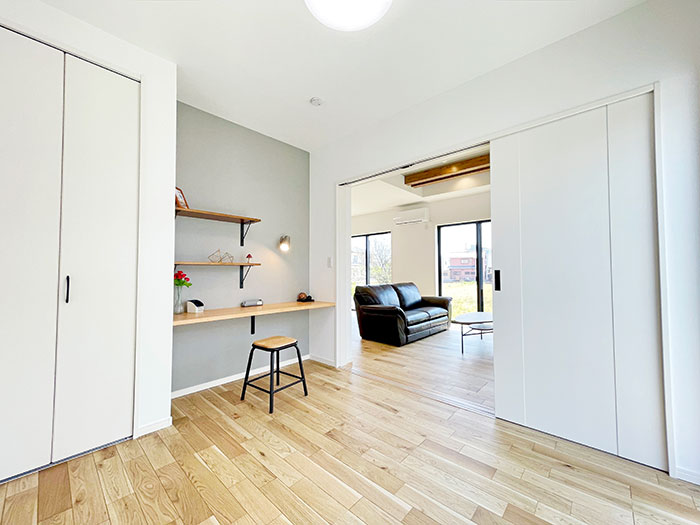 ミルク期が終わっても、子どもが小さいうちは1階の部屋を家族の寝室にすると色々と便利です。