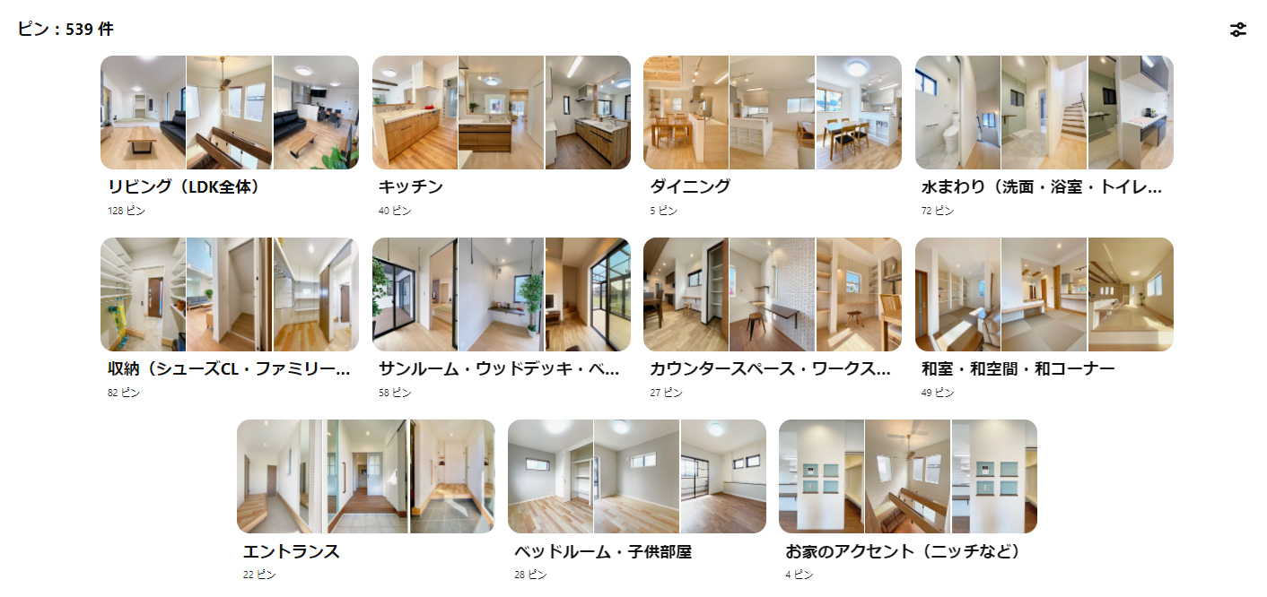 ボードが細かく分かれているからお気に入りが見つけやすくなっています。注文住宅を考えている方にも役立つアイデアがいっぱい!!ぜひ参考にしてみてくださいね♪