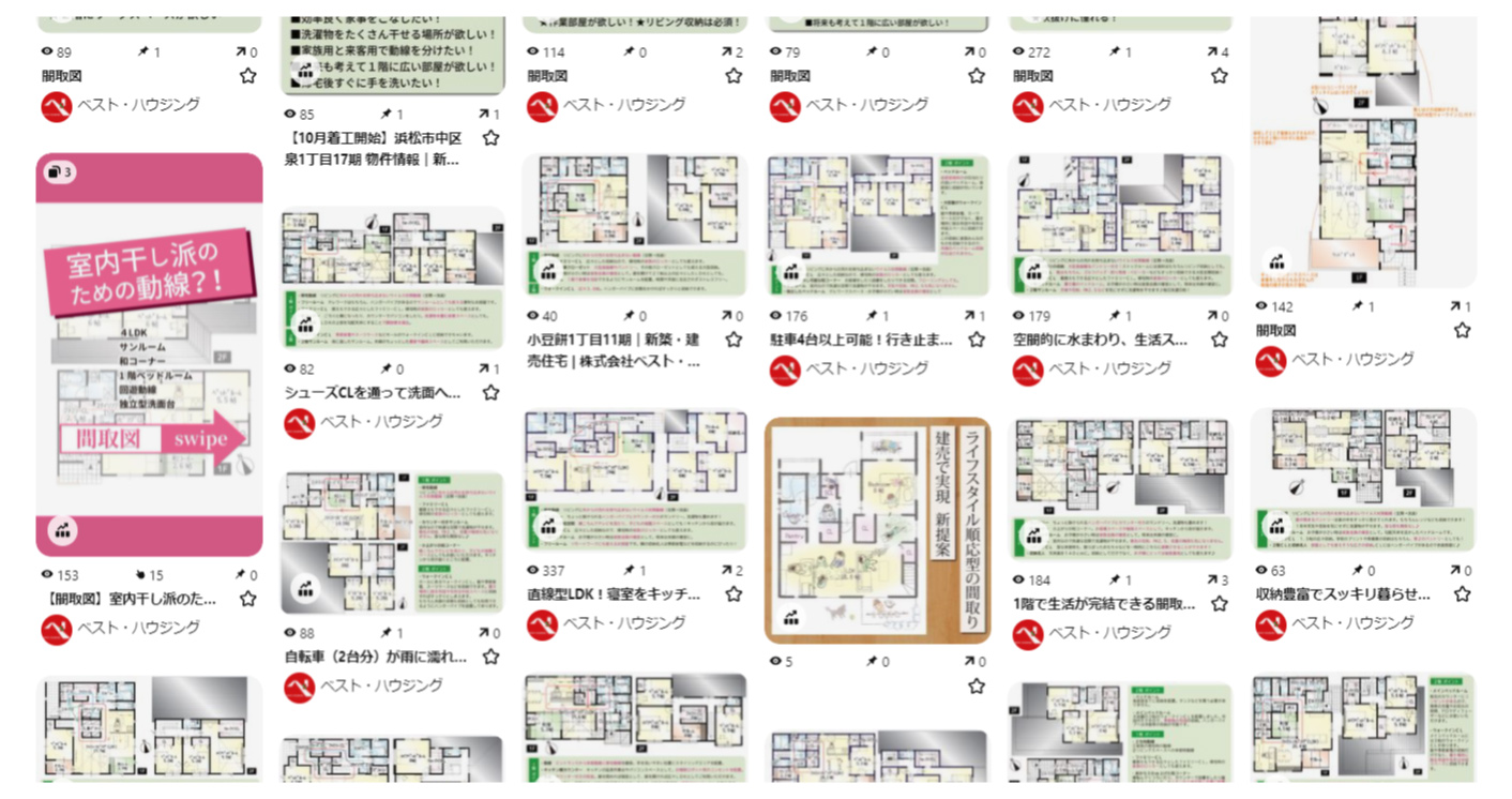 ベスト・ハウジングはSNSも充実!ピンタレスト(Pinterest)では、社員イチオシの間取りや反響の多い物件の写真などを中心に随時更新しています。ぜひ、お気に入りをシェアしてくださいね✩