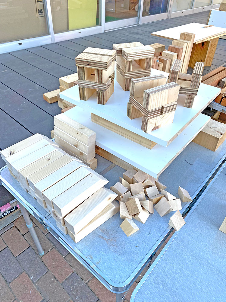 2021年12月:工務さん、営業さんがモルックや積み木を作ってくれました♪