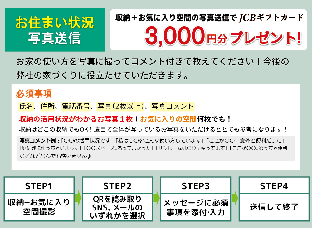 収納+お気に入り空間の写真送信でJCBギフトカード3,000円プレゼント!ご協力よろしくお願いいたします♪
