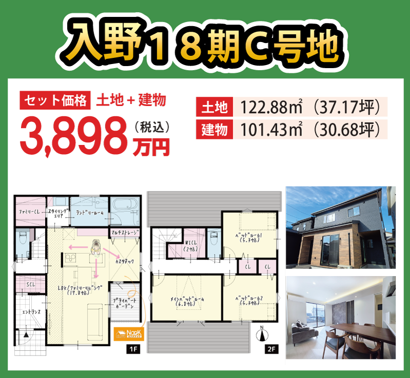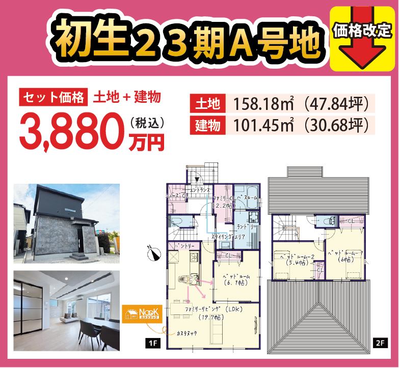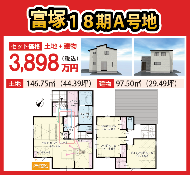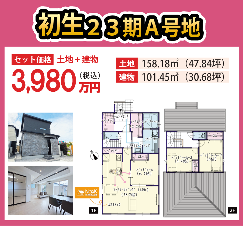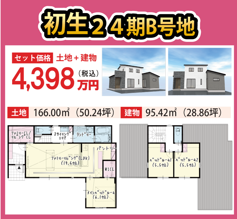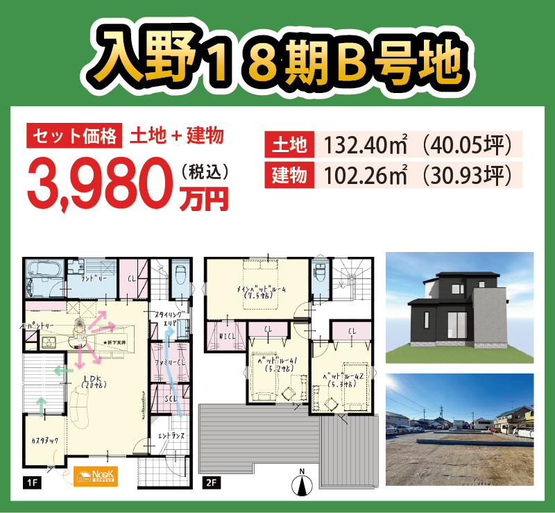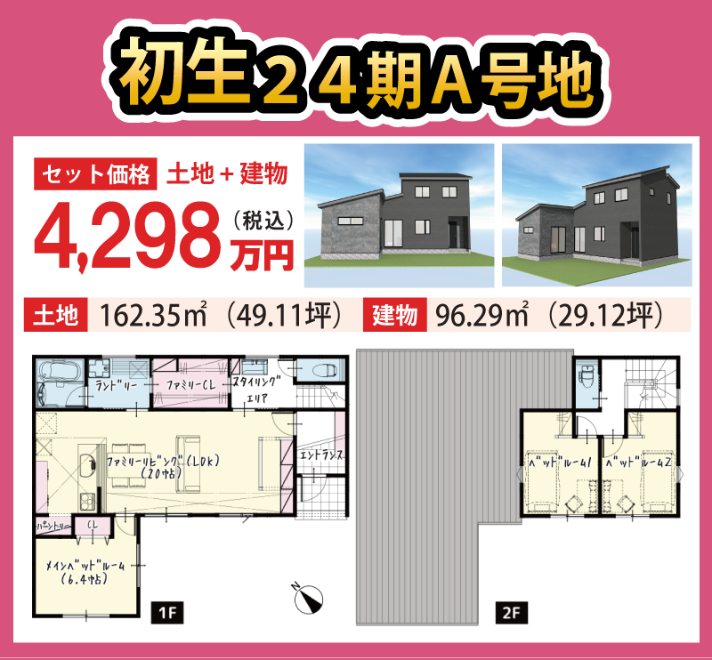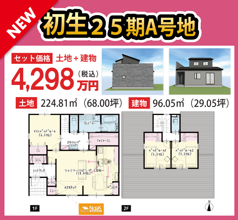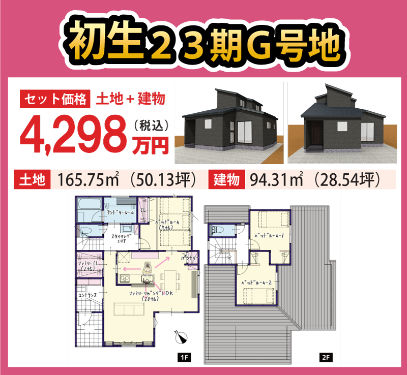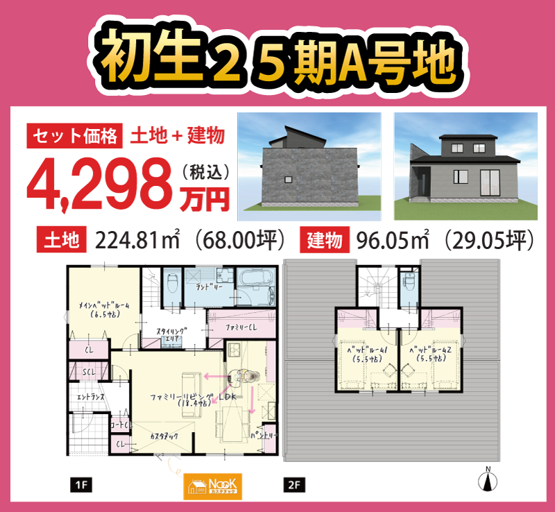 建売住宅はピンク色、土地は緑色になっているよ♪