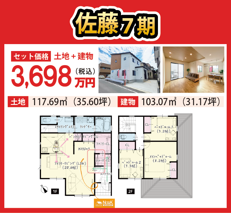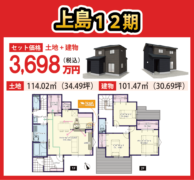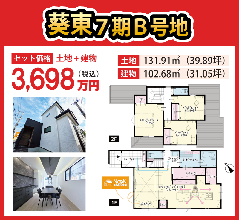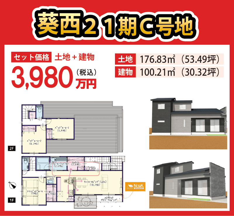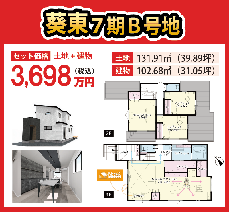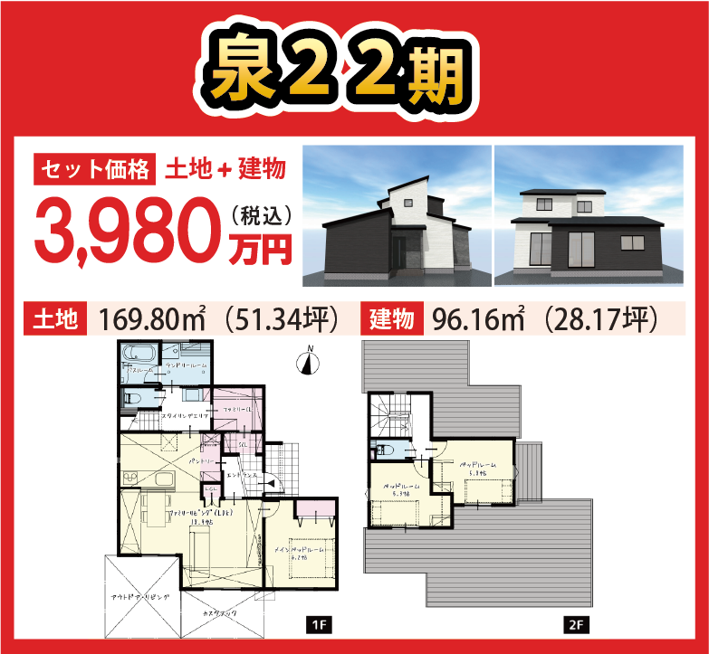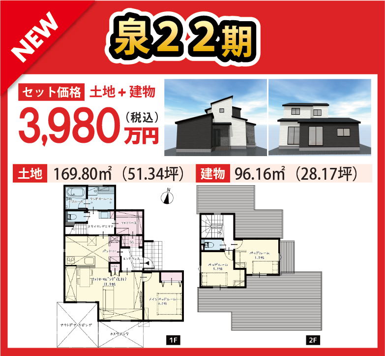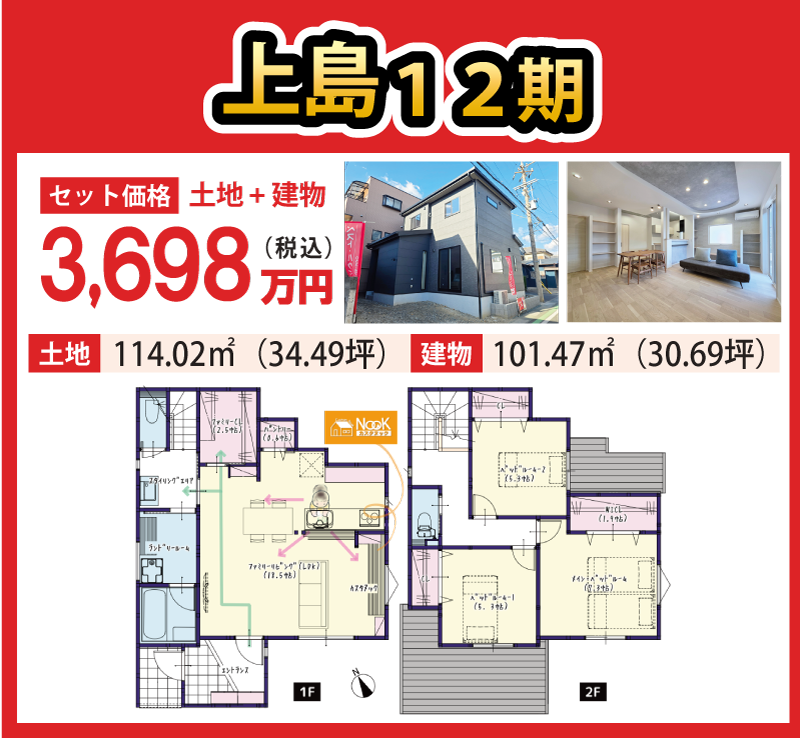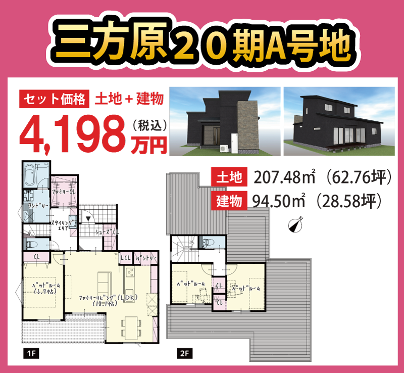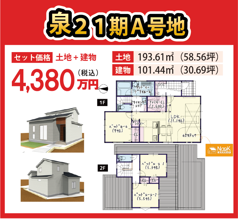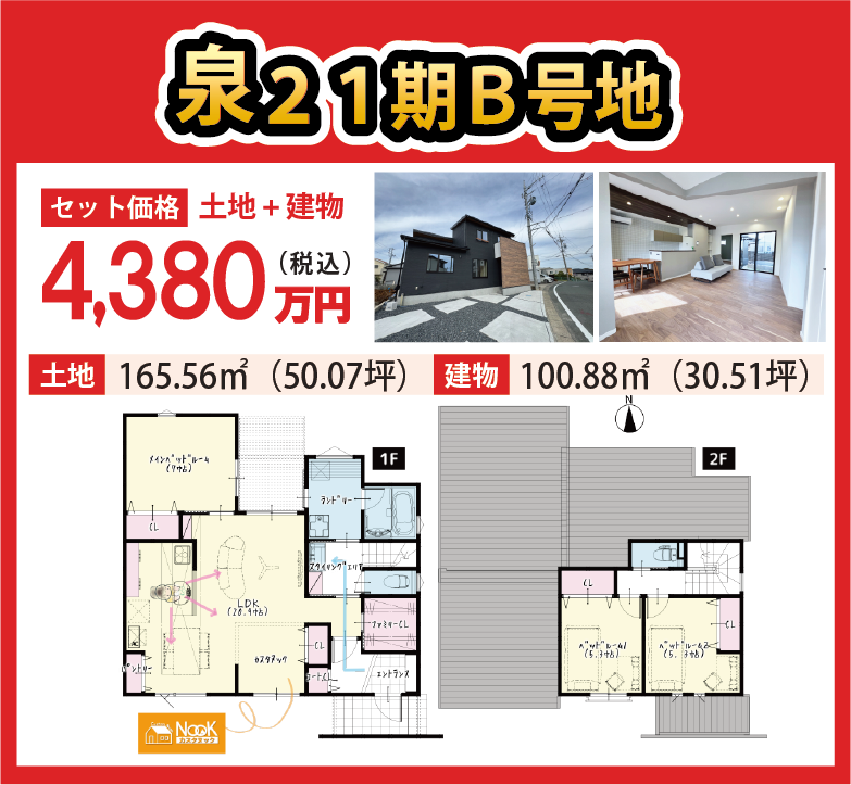 建売住宅はピンク色、土地は緑色になっているよ♪