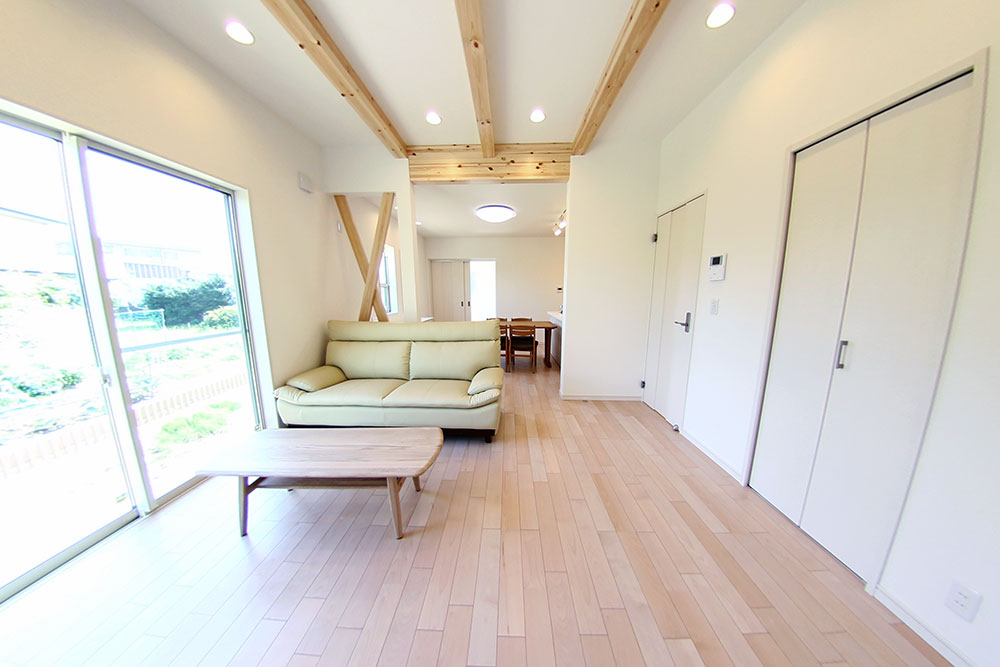 「サンデッキ」を採用した3LDKの住まい。ラインボーンフローリング×ライン照明のLDK