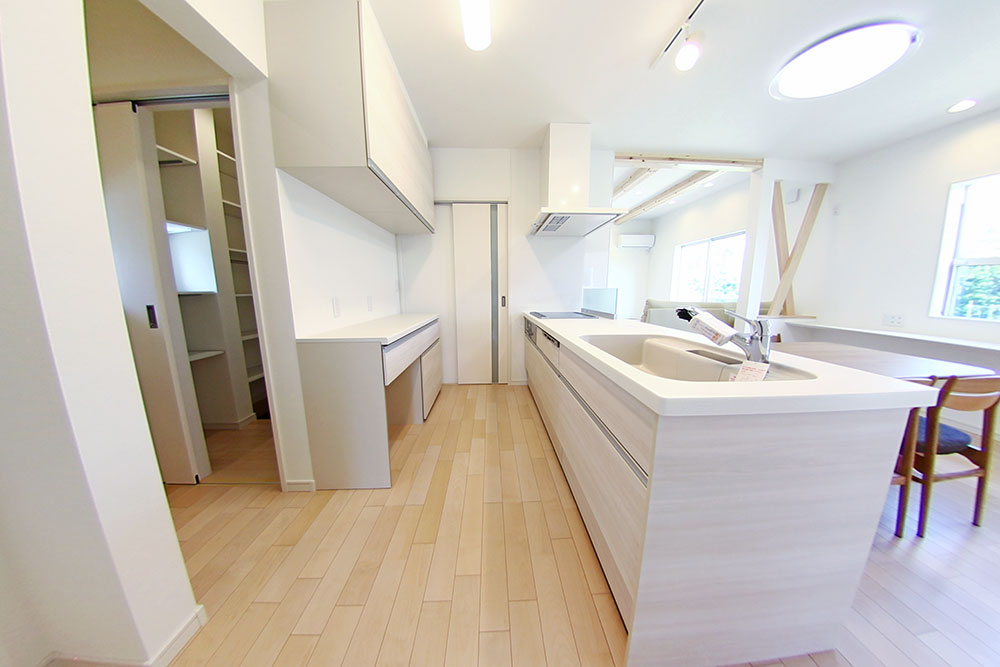 買い物から帰宅後リビングを通らずに食材の整理がスムーズにできるお家