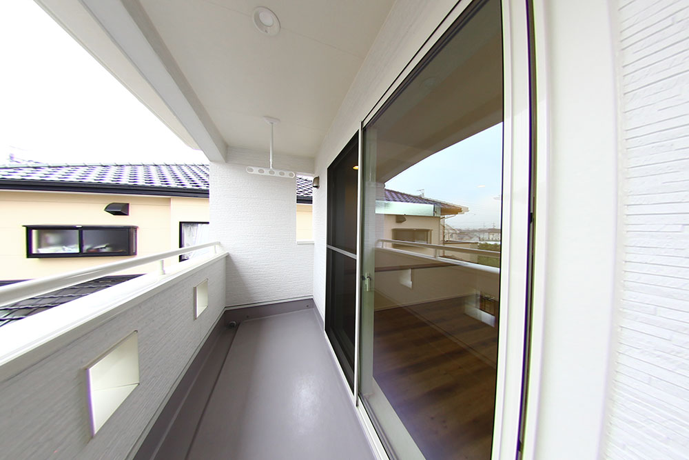 屋根付きウッドデッキのある子育てに優しい間取りの住まい