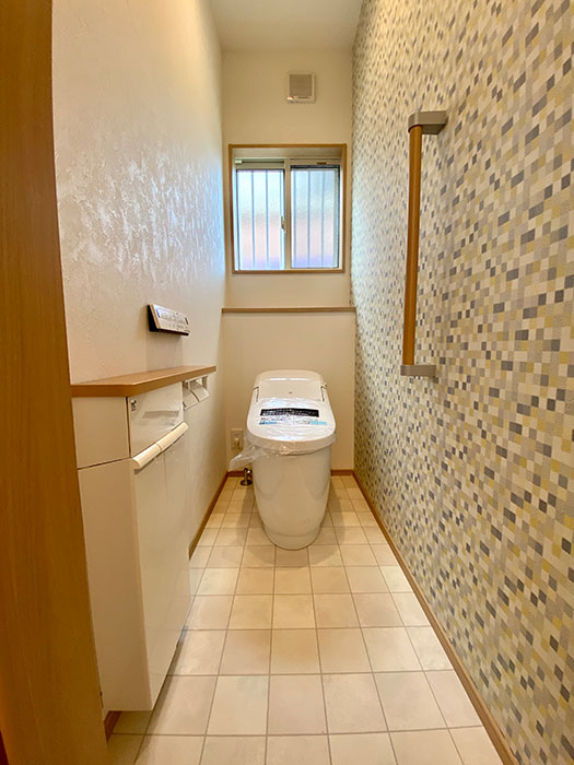 手洗い動線が直線でラク!ヘリンボーンとグレーの組み合わせが人気の配色です!