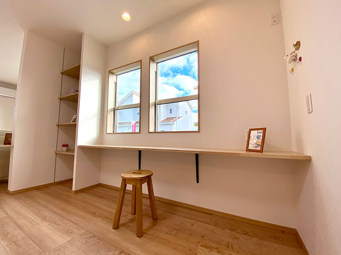 - 日当たりの良い明るい5.7帖のベッドルーム。カウンターは、勉強机や趣味にさまざまな用途で使えます。