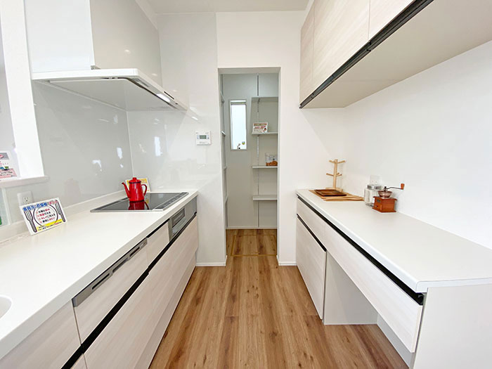 買い物から帰宅後リビングを通らずに食材の整理がスムーズにできるお家