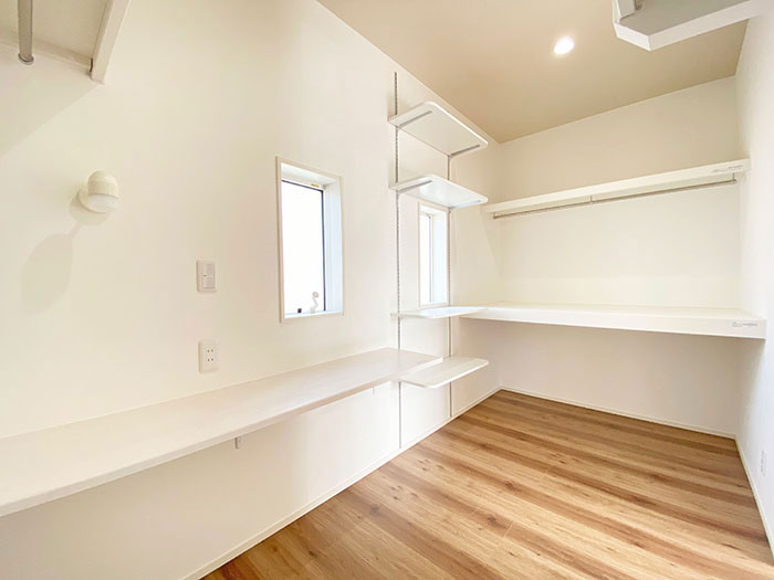 1階に洗濯物を干すことができテレワークコーナーにもなるお部屋付き