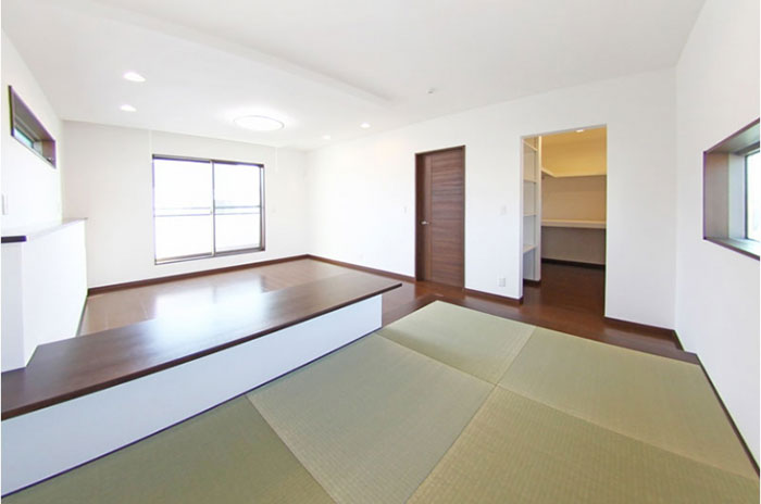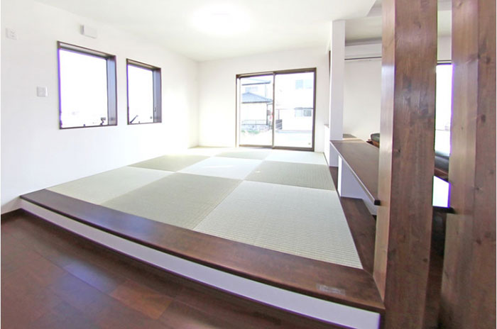 畳を寝室とリビングの各階に配置しました。 ちょっと横になりたい時にとても便利です。また、 二世帯住宅としても住みやすい構造になっています。2階建て LDK充実