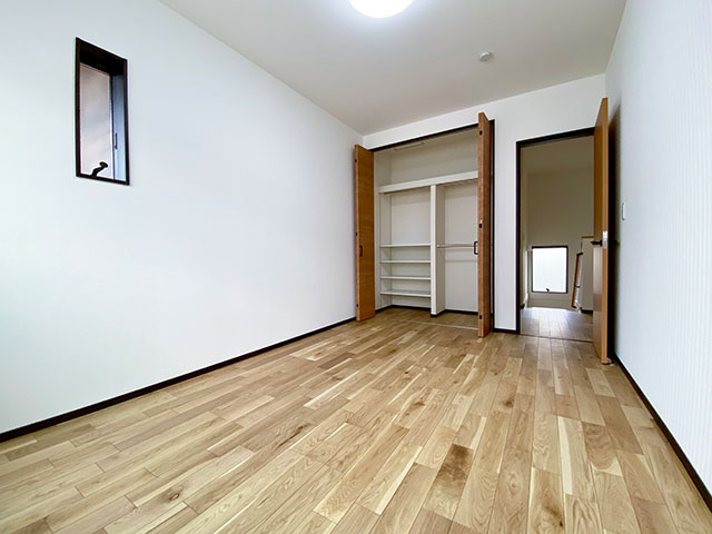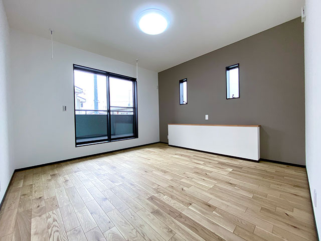 ダブルベッドを置いても余裕のある9帖のメインベッドルーム。室内物干し付きです!