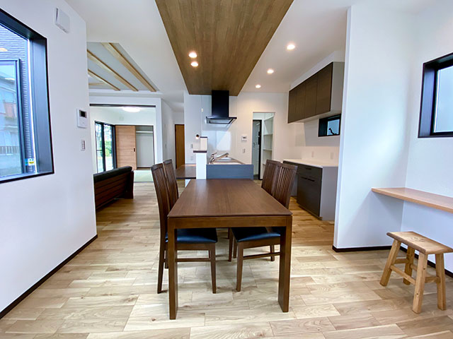 ダイニングからはキッチン、リビング、和室まで見渡せるので楽しく食事ができます♪