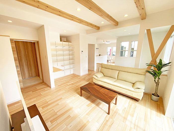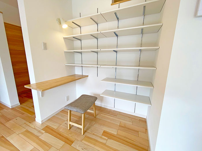 白×木目のシンプルモダンなデザイン。内装の可愛さと機能性とが充実した住まい