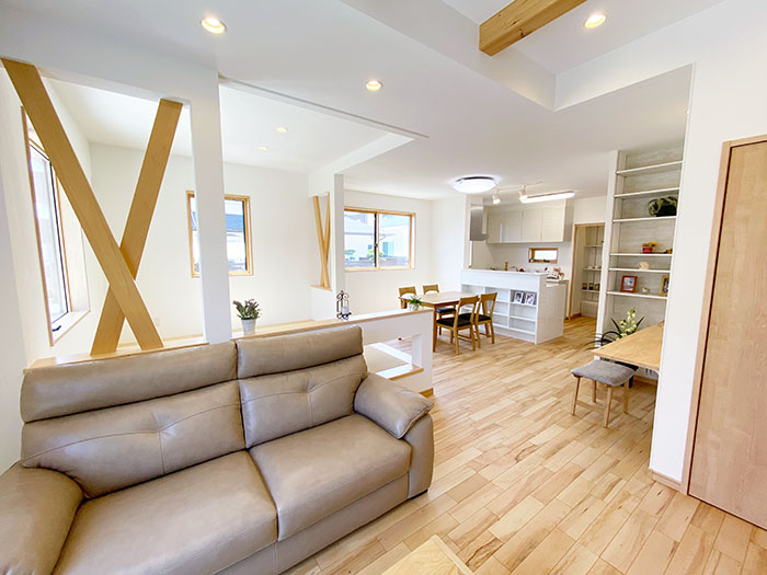 自然のぬくもりを感じられる開放感のあるリビング空間になりました。