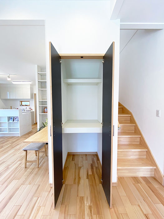 大切な書類やお子様のおもちゃ等をたっぷり収納できるスペースを確保しました。