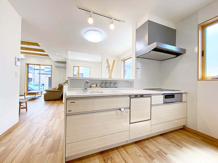 キッチンからはリビングの様子を見ることができるので、お子さまがいる方も安心してお料理ができます。
