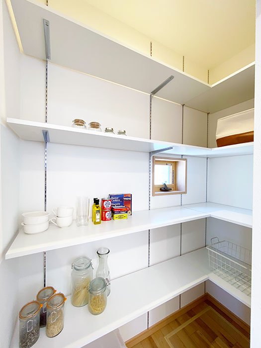 大容量の食品をストックできるパントリーには普段使わない調理器具もしまえてキッチンまわりもスッキリ!
