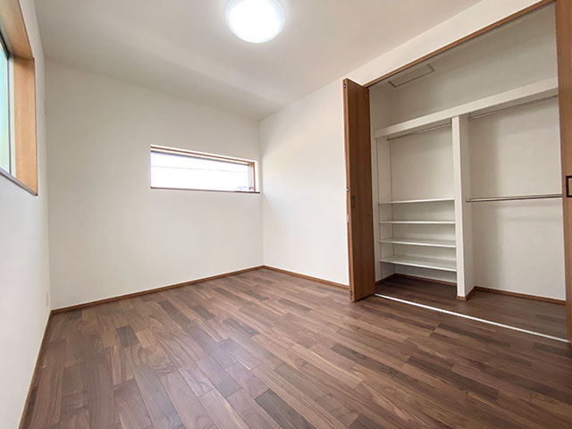 6帖のベッドルーム。階段をあがってすぐのお部屋になります。朝起きるのが早い、又は夜寝るのが遅いご家族におすすめです。