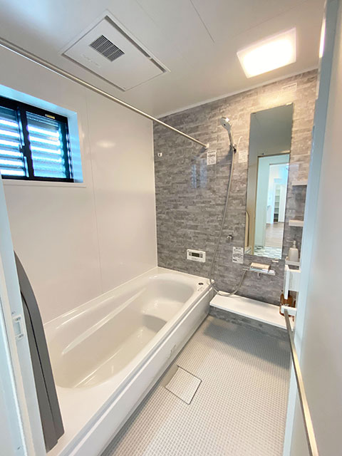 シンプルで落ち着いた空間に。浴室乾燥機付きで雨の日のお洗濯も安心です。