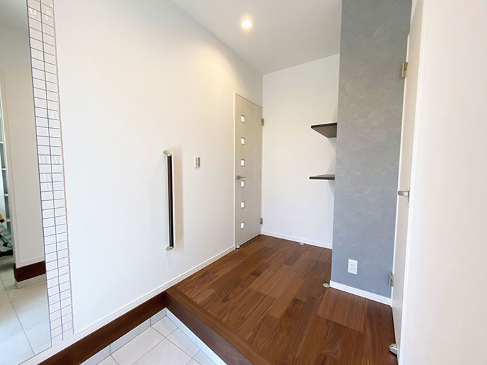 靴を脱いで洋服を掛けてすぐに手を洗えるように動線を意識しました。