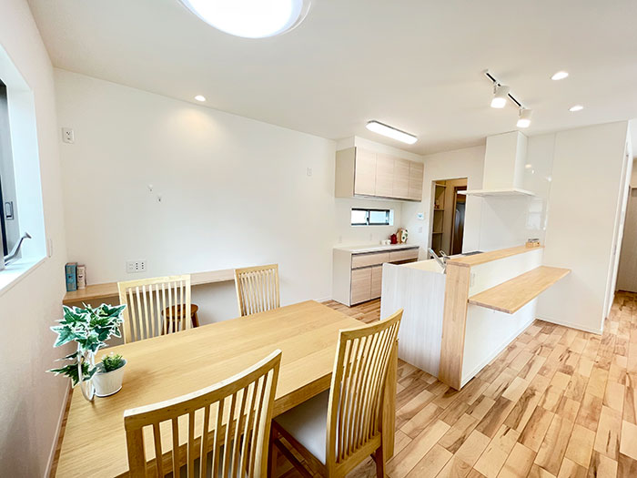 パソコンデスク・学習机・アイロン台などいろんな用途で使えるカウンターをキッチンの隣に配置しました。