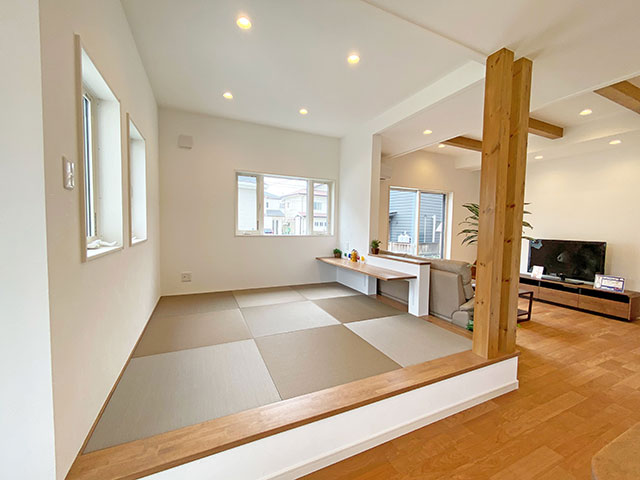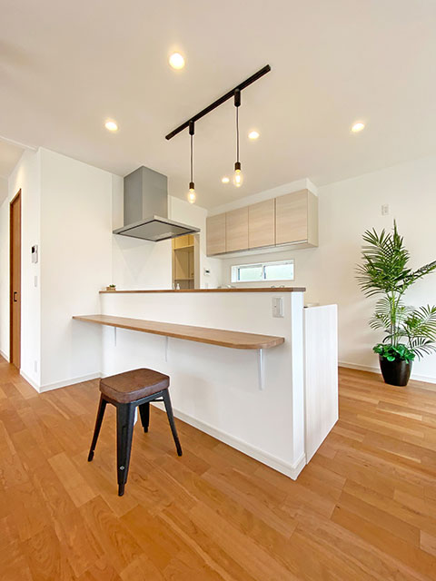 シンプルな色使いでありながらデザイン性と機能性を兼ね備えた、魅力的な平屋空間