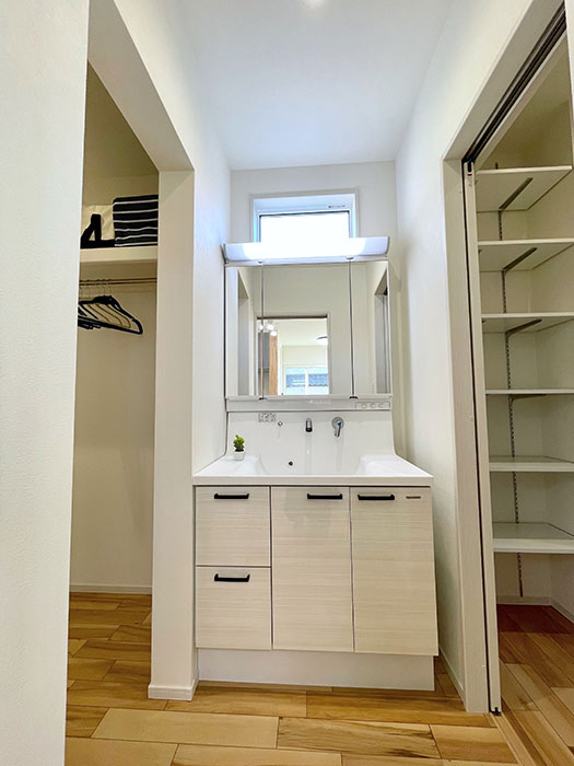 帰宅後、シューズクローゼットを通り洗面へ向かえるのでながら収納ができちゃいます。