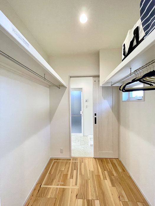 着替える洋服を隣りのファミリーCLから持ってきてすぐにお風呂に入れるように配置にこだわりました。
