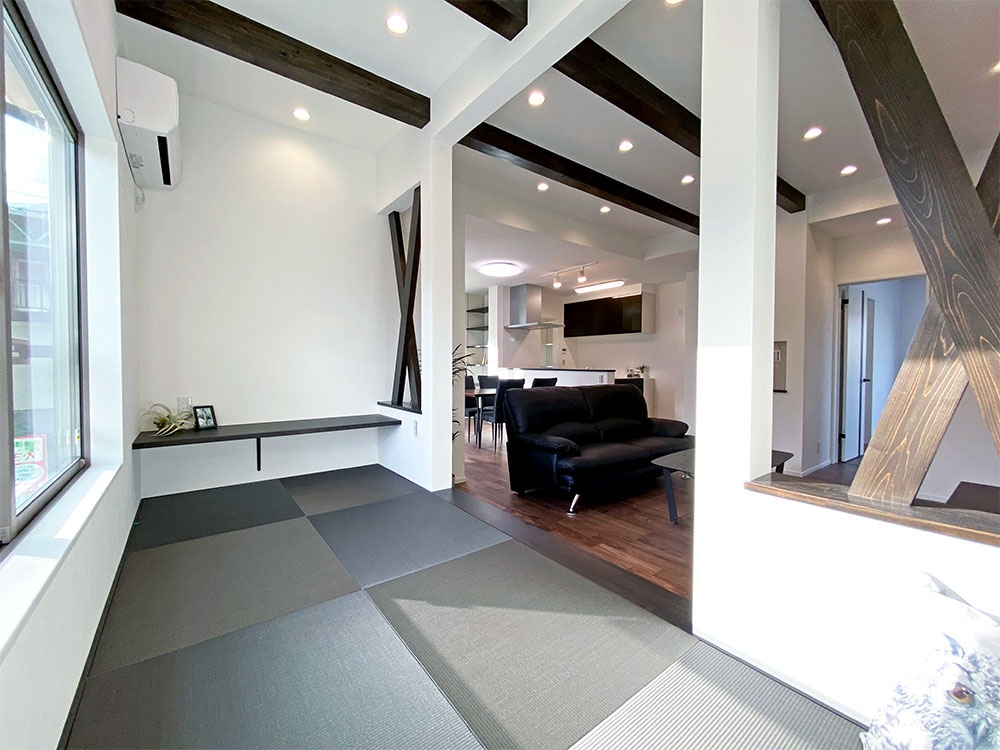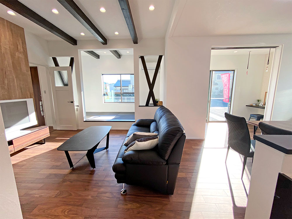 20帖超えのLDKにカスタヌック空間!天井高と小上がりが生み出す、立体的な暮らし。
