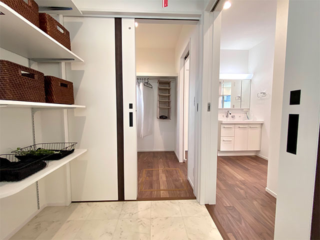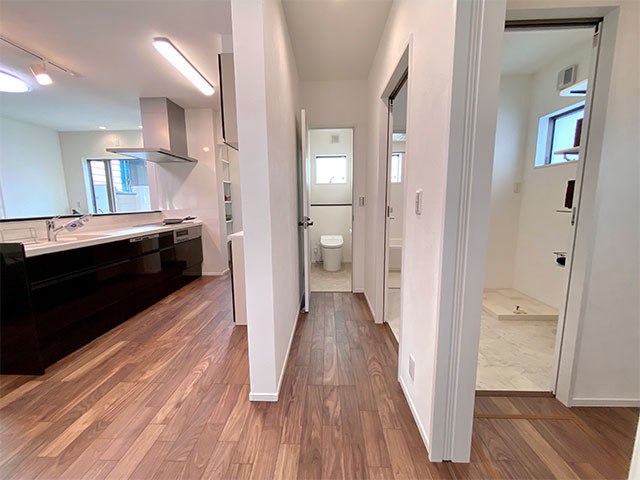 キッチン裏に水まわりを集約。家事ラク動線になっています。