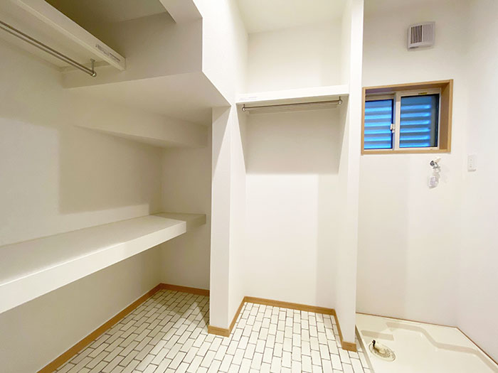 ランドリーに洗濯物を干したり、アイロンがかけられるように広い空間を確保しました。