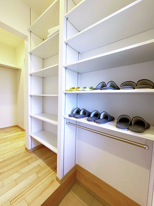 エントランス→シューズCL→ファミリーCLへと繋がる家族動線。日常の動作がスムーズです。