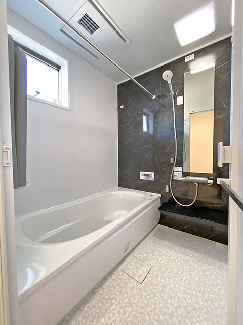 乾きやすく・カビにくくお手入れがラクな床に断熱材で包み込んだ魔法びん浴槽。浴室換気暖房乾燥機付きと使いやすさを追求したバスルーム。