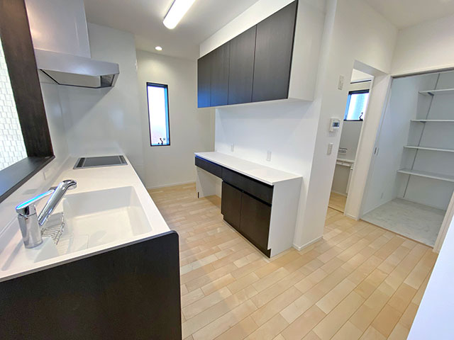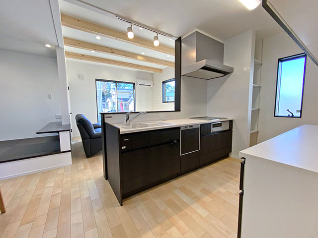 小上がりの和空間では寝ころんでテレビをみたり、お子様の宿題スペースなど、キッチンで食事の支度をしながらでも目が届くので安心です。