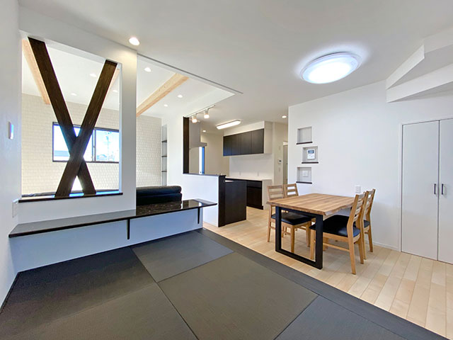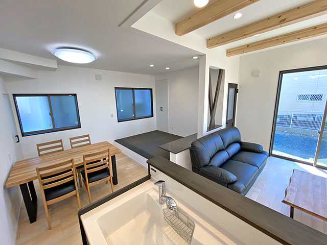 20帖超えのLDKにカスタヌック空間!天井高と小上がりが生み出す、立体的な暮らし。