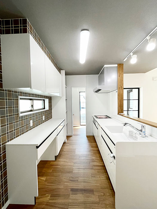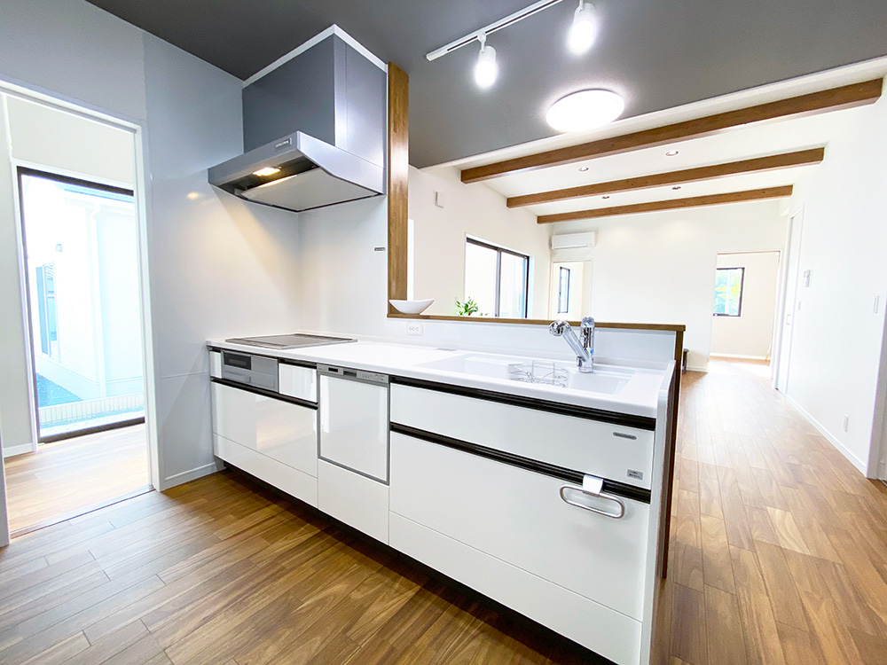玄関からキッチンへ、一直線の快適な家事動線!心地よい暮らしの始まりを、建築の美と機能で実現