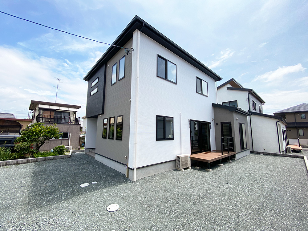 ホワイト×グレーに締め色のブラックを合わせた外観デザイン!