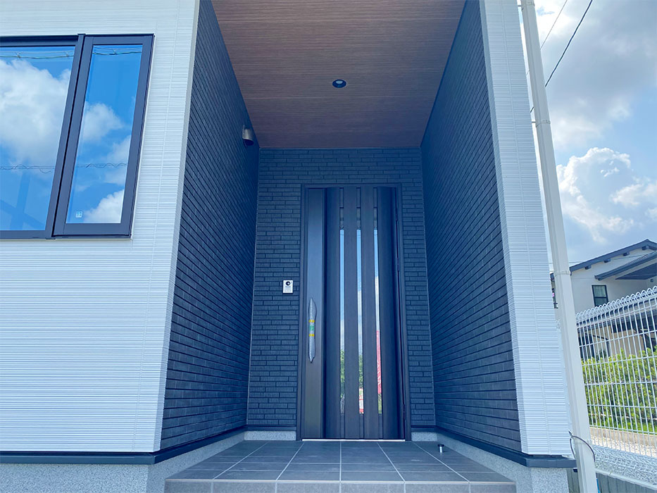 ポーチが深いので、雨除け・陽ざし除け・目隠しと助かります!この広さであれば宅配ボックスの設置や自転車も置けますね。