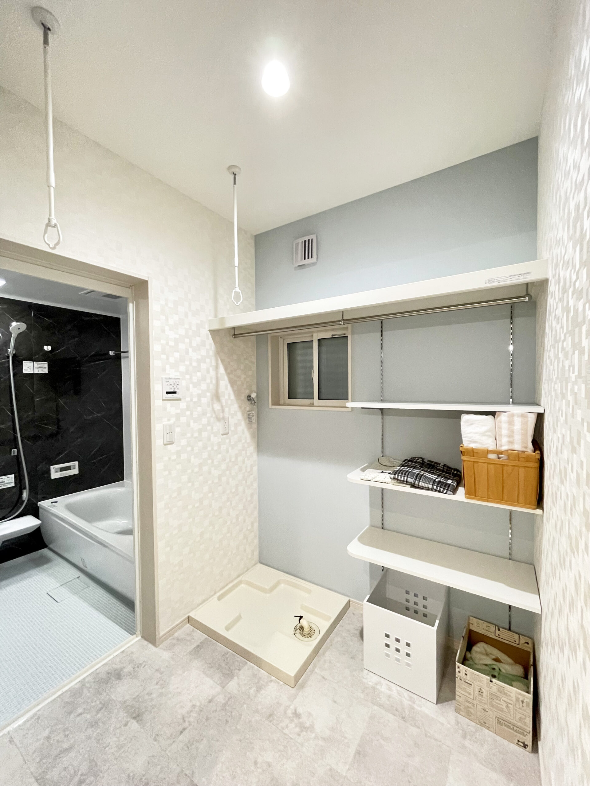 モダンなデザインが光るクロス使いにこだわった住まい!洗濯物を3か所で干せる洗濯にこだわる方必見♪