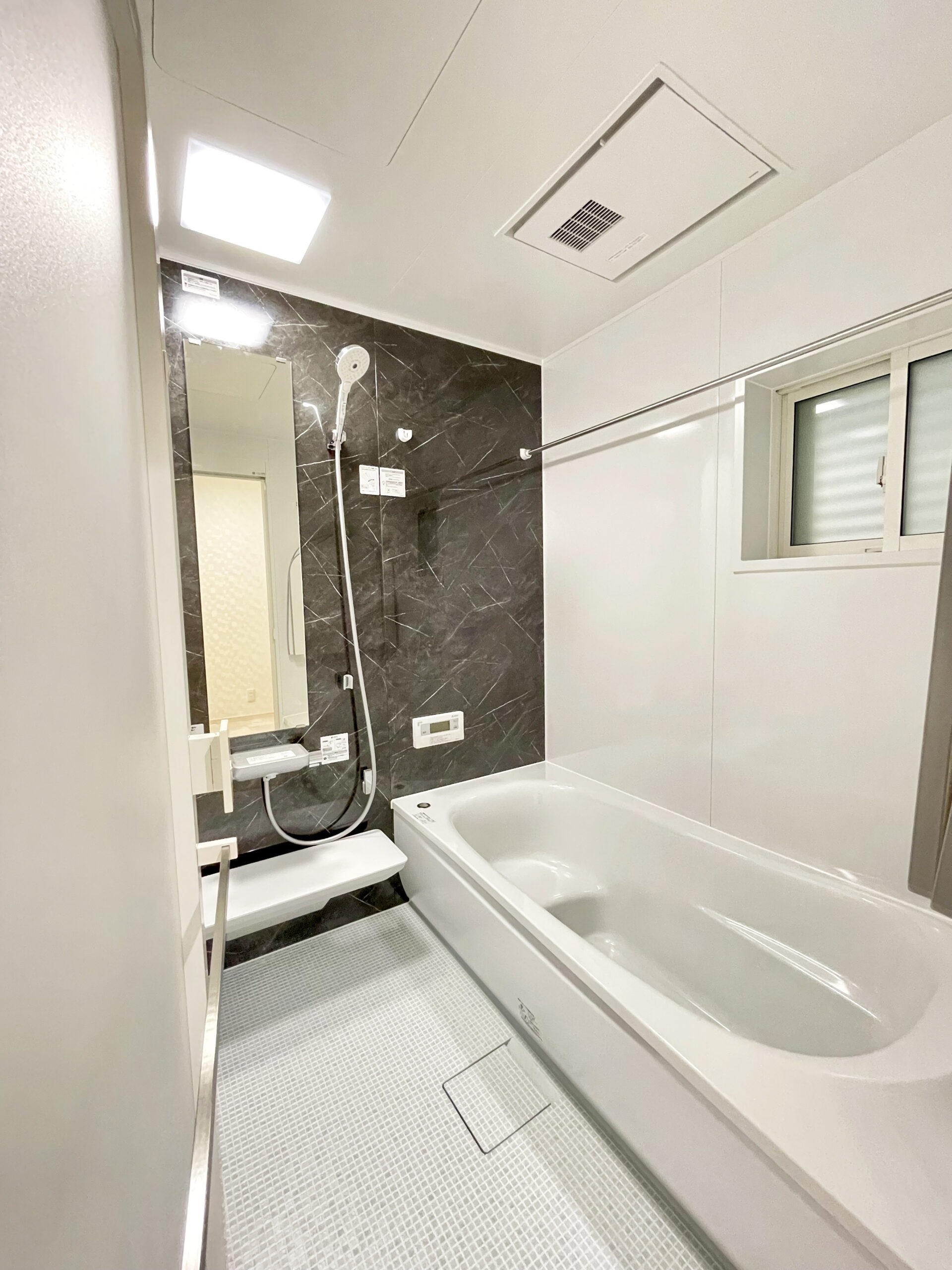 清潔感のあるホワイト×ブラウンの浴室は人気の配色。