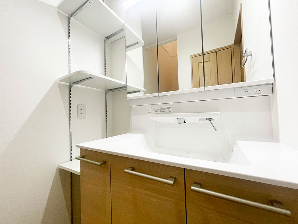 全身鏡に手すり・棚。お客様をお迎えしたくなります。