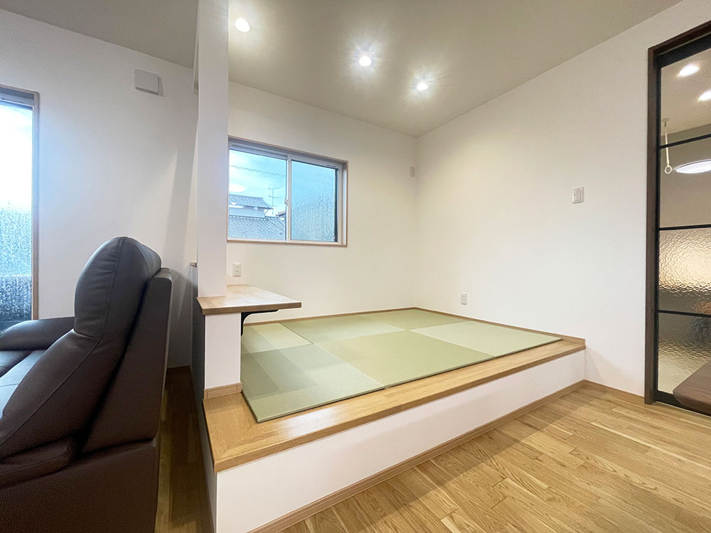 小上がりの和コーナーは置き畳を採用。お手入れ・模様替えも楽ちん♪