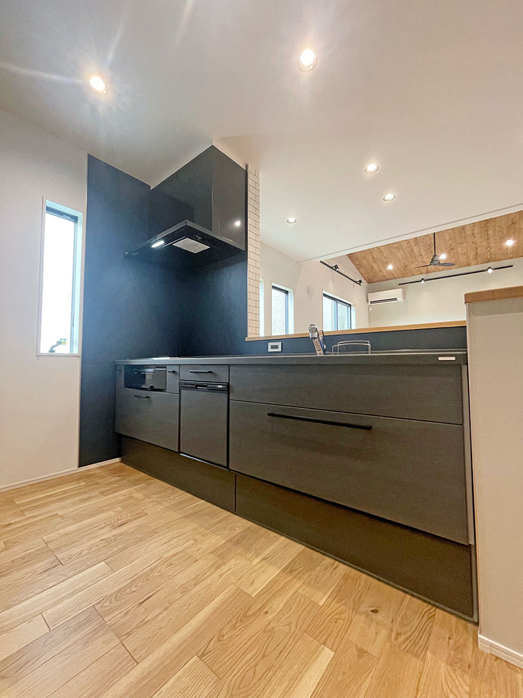 トクラスのキッチン。LDKの雰囲気に合わせてカラーを選びました。